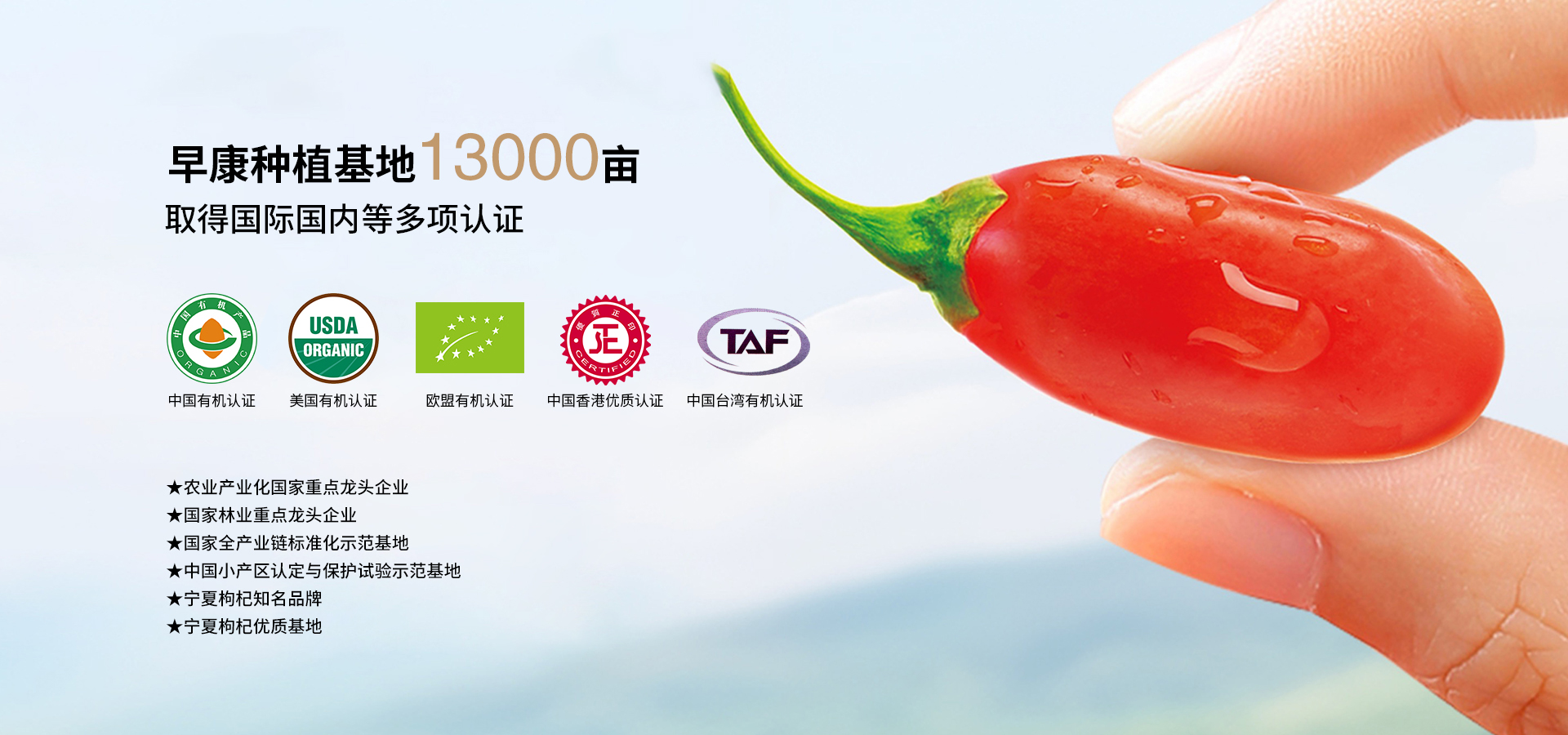 27年來(lái)始終堅(jiān)持品質(zhì)第一,為消費(fèi)者提供純正安全的中寧枸杞。