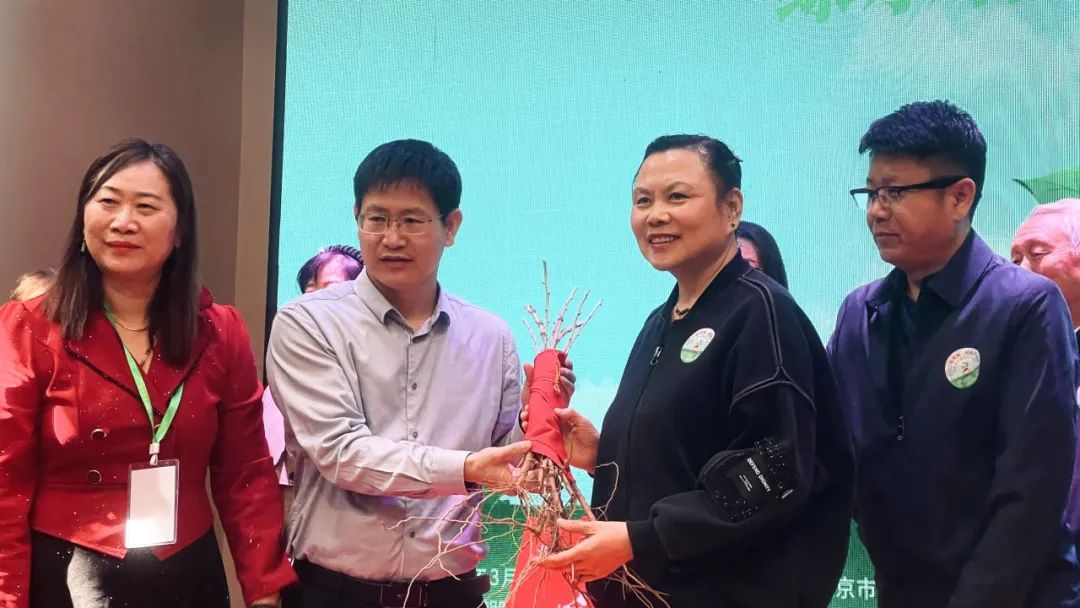 活動(dòng)伊始,追光林揭牌啟動(dòng)儀式隆重舉行。原北京新四軍研究會(huì)會(huì)長(zhǎng)陳昊蘇、中國(guó)校園健康行動(dòng)紅偉愛(ài)國(guó)主義教育基地主任毛小青、彭德懷侄外孫張峰等嘉賓共同為“2025追光林”揭牌。現(xiàn)場(chǎng),來(lái)自“中國(guó)枸杞之鄉(xiāng)”寧夏中寧,由中寧縣政府精心培育的300棵“鮮食枸杞樹(shù)苗”成為焦點(diǎn),它們既能防風(fēng)它們既能固土防風(fēng)、涵養(yǎng)生態(tài),又能孕育“紅色產(chǎn)業(yè)”,帶動(dòng)農(nóng)民致富。我們相信,當(dāng)枸杞樹(shù)扎根北京,種下的不僅是生態(tài)屏障,更是東西部協(xié)作、鄉(xiāng)村振興的紐帶!另外北京一路暢通傳媒則回贈(zèng)寧夏中寧30棵不老莓樹(shù)苗,寓意京寧兩地?cái)y手共筑綠色未來(lái)。